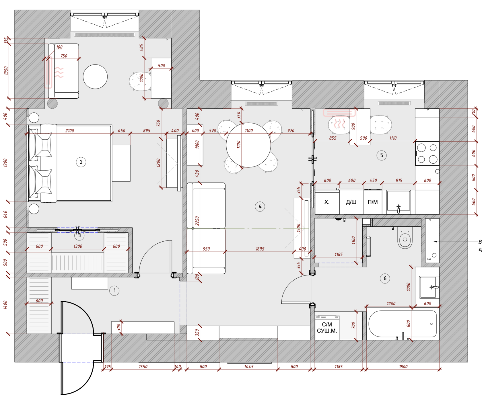 59 м², 1 спальня